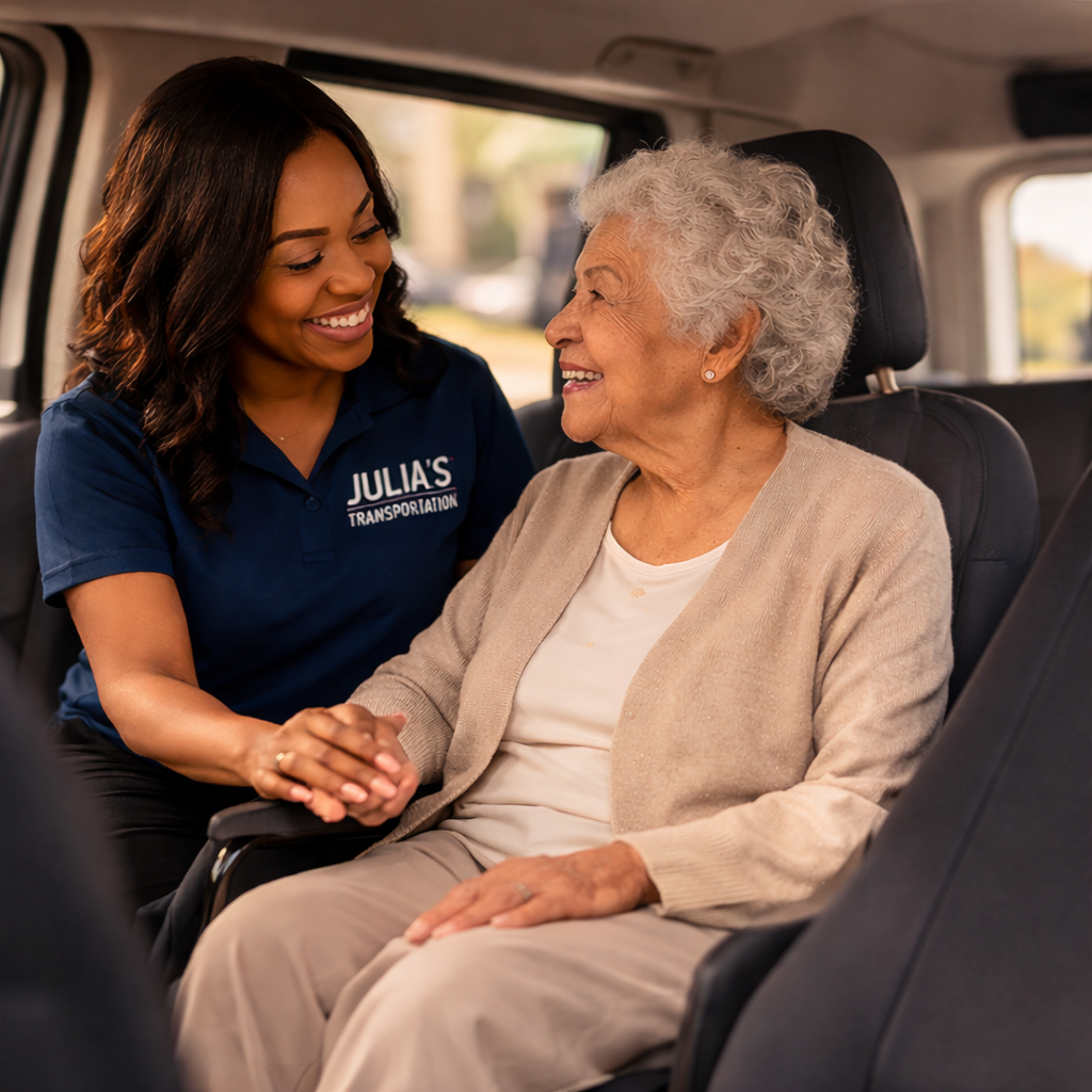 Julia’s Transportation provides safe and dependable non-emergency medical transportation for individuals who need assistance getting to medical appointments, dialysis treatments, therapy visits, hospital discharges, and other healthcare services. Our goal is to ensure every passenger arrives at their destination comfortably, safely, and on time.